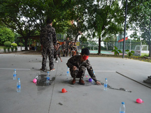 項目說明: 看不見戰場的司令官指揮不能說話的指揮官,讓盲人士兵在戰場中尋找水彈擊中敵方的士兵。 項目收益: 1、發送信息要完整、及時、準確; 2、通過活動,讓大家能明白工作溝通中,信息的發送、接受和確認反饋的重要性; 3、向上溝通,向下溝通和平行溝通的注意點。