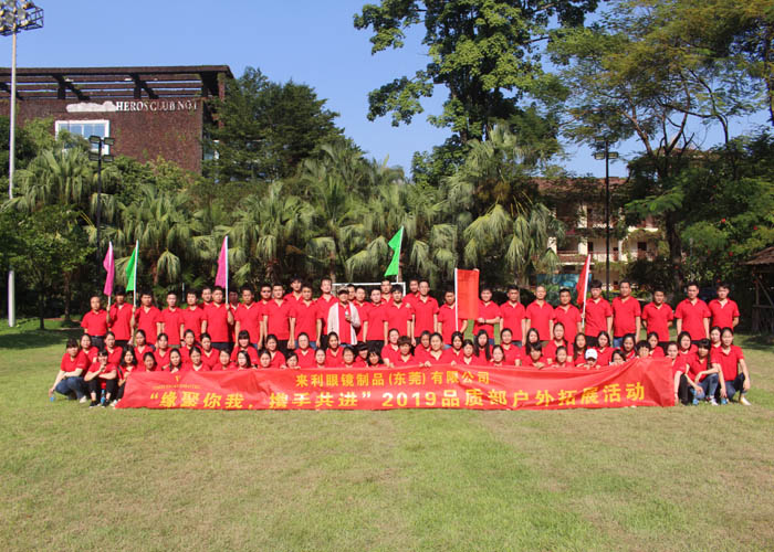 來利眼鏡制品(東莞)有限公司,通過趣味拓展活動加強員工的團隊協作精神,加強集體的榮譽感,達到卓越團隊的成效,讓員工在輕松有趣的歡樂氛圍中釋壓,進而展現更大正能量。——大勝團隊公司簡介:來利眼鏡制品(東莞)有限公司,生產和銷售眼鏡及配件,五金制品。設立研發機構,研究開發眼鏡及配件,五金制品。從事眼鏡及配件,五金制品的批發及進出囗業務。